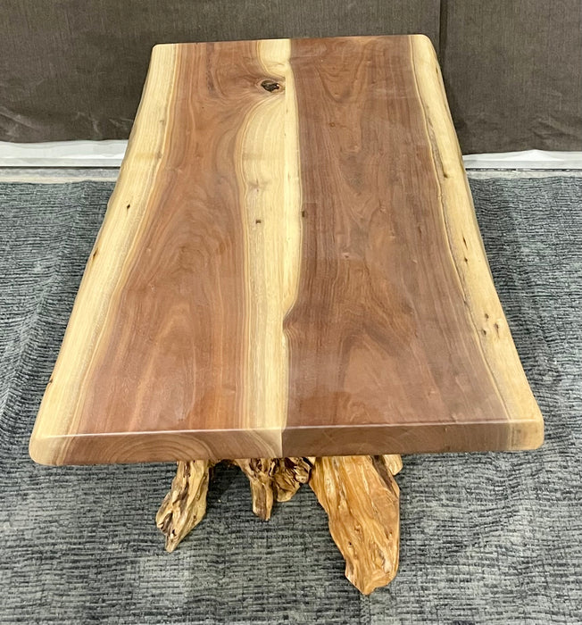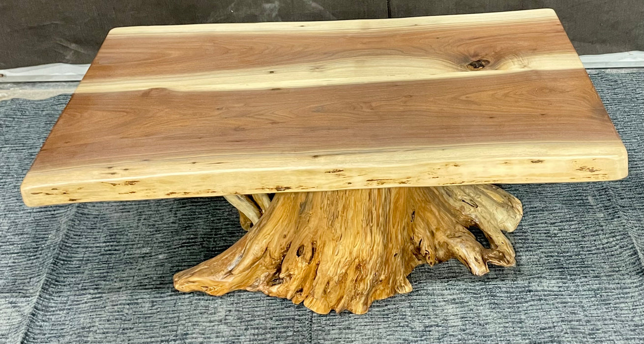 Amish handcrafted black walnut coffee table table with an aspen stump